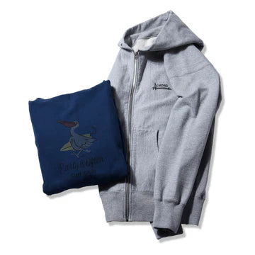 Made in Japanのスウェットジップフーディー。生地を触れば違いを感じられるジャパンクオリティのスウェットで軽いアウターとしても使用できるかも。バックにはアイコンキャラのペリカンも。右胸のロゴの刺繍の仕上がりもジャパンクオリティならでは。長いシーズンご愛用頂ける商品です。コットン100% 日本製